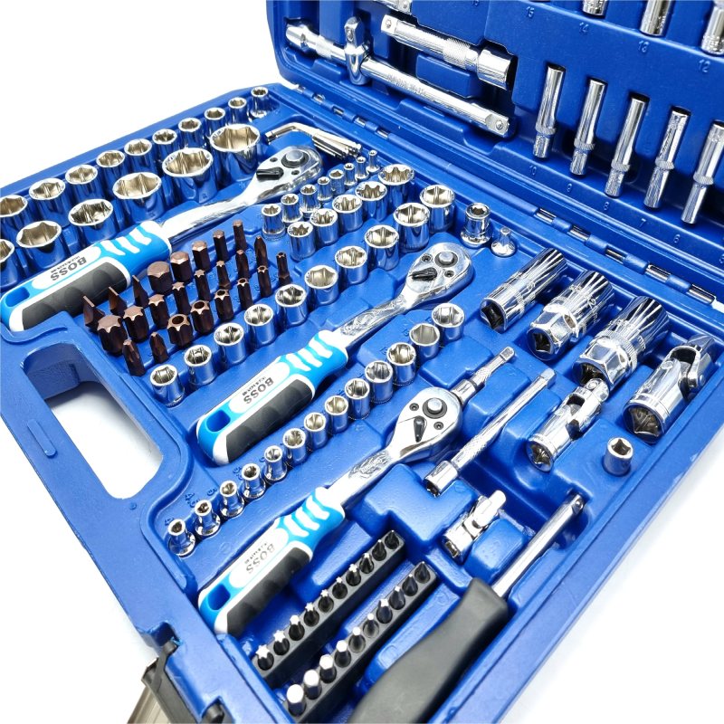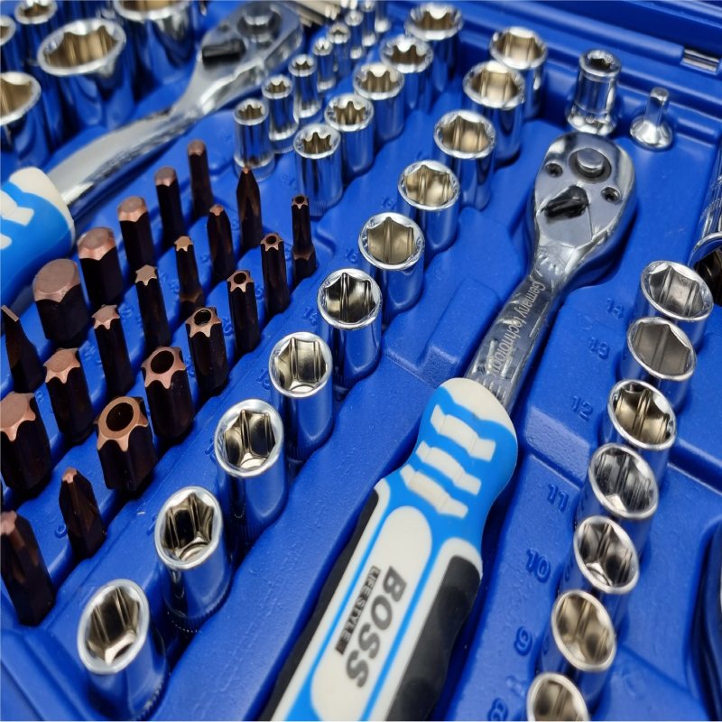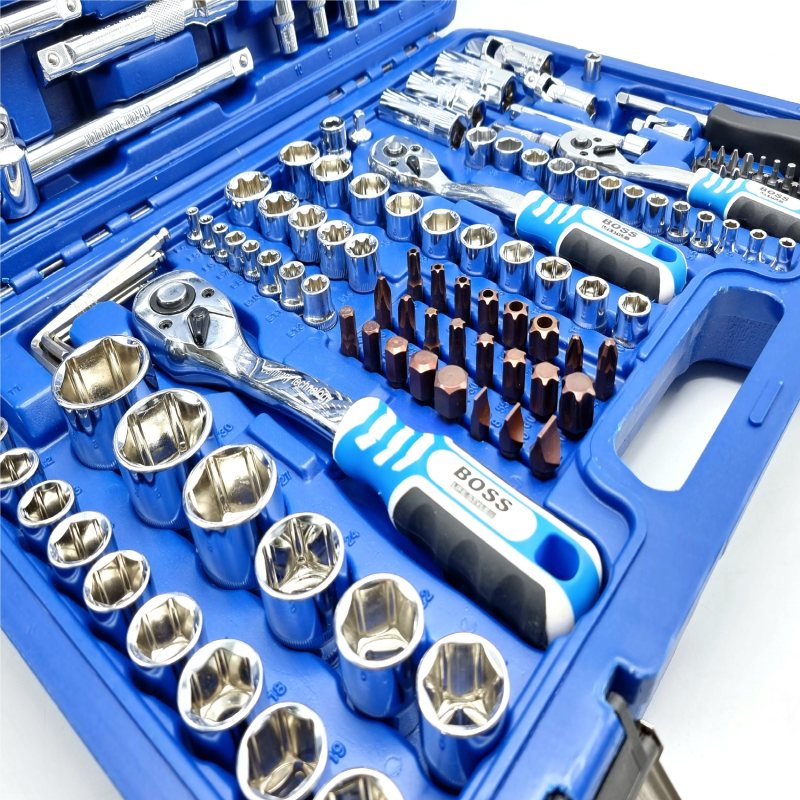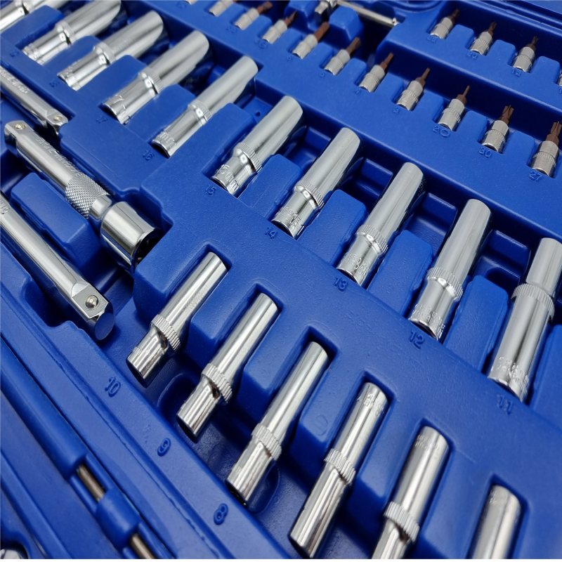 دارای ۱۳ سری بکس با درایو ۱.۴ اینچ در سایزهای ۴، ۴.۵، ۵، ۵.۵، ۶، ۷، ۸، ۹، ۱۰، ۱۱، ۱۲، ۱۳، ۱۴ میلی متر دارای ۷ سری بکس بلند با درایو ۱.۴ اینچ در سایزهای ۴ ، ۵ ، ۶ ، ۷ ، ۸ ، ۹ ، ۱۰ میلی متر دارای ۵ سری بکس E با درایو ۱.۴ اینچ در سایزهای E۴ ، E۵، E۶ ، E۷ ، E۸ دارای ۱۰ سری بکس با درایو ۳.۸ اینچ در سایزهای ۱۰ ، ۱۱ ، ۱۲ ، ۱۳ ، ۱۴ ، ۱۵ ، ۱۶ ، ۱۷ ، ۱۸ ، ۱۹ دارای ۶ سری بکس بلند با درایو ۳.۸ اینچ در سایزهای ۱۰ ، ۱۱ ، ۱۲ ، ۱۳ ، ۱۴ ، ۱۵ ۶ سری بکس E با درایو ۳.۸ اینچ در سایزهای E۱۰ ، E۱۱ ، E۱۲ ، E۱۴ ، E۱۶ ، E۱۸ ۱۷ سری بکس با درایو ۱.۲ اینچ در سایزهای ۱۰ ، ۱۱ ، ۱۲ ، ۱۳ ، ۱۴ ، ۱۵ ، ۱۶ ، ۱۷ ، ۱۸ ، ۱۹ ، ۲۰ ، ۲۱ ، ۲۲ ، ۲۴ ، ۲۷ ، ۳۰ ، ۳۲ میلی متر ۵ سری بکس بلند با درایو ۱.۲ اینچ در سایزهای ۱۶ ، ۱۷ ، ۱۸ ، ۱۹ ، ۲۲ میلی متر ۲ سری بکس E با درایو ۱.۲ اینچ در سایزهای E۲۰ و E۲۴ دارای ۳ آچار بکس جغجغه ای ۷۲ دندانه در درایوهای ۱.۴ ، ۳.۸ و ۱.۲ اینچ با قابلیت چرخش در دو جهت و روکش ضدلغزش ۱ بکس شمعی با درایو ۳.۸ و سایز ۱۸ میلی متر و ۲ بکس شمعی با درایو ۱.۲ و سایزهای ۱۶ و ۲۱ میلی متر ۳ رابط لقلقه ای در درایوهای ۱.۴ ، ۳.۸ و ۱.۲ اینچ دارای ۱ دسته بکس T شکل کاربردهای پیشنهادی : مخصوص مکانیک انواع خودروهای سبک ، سنگین ، ماشین آلات در محل